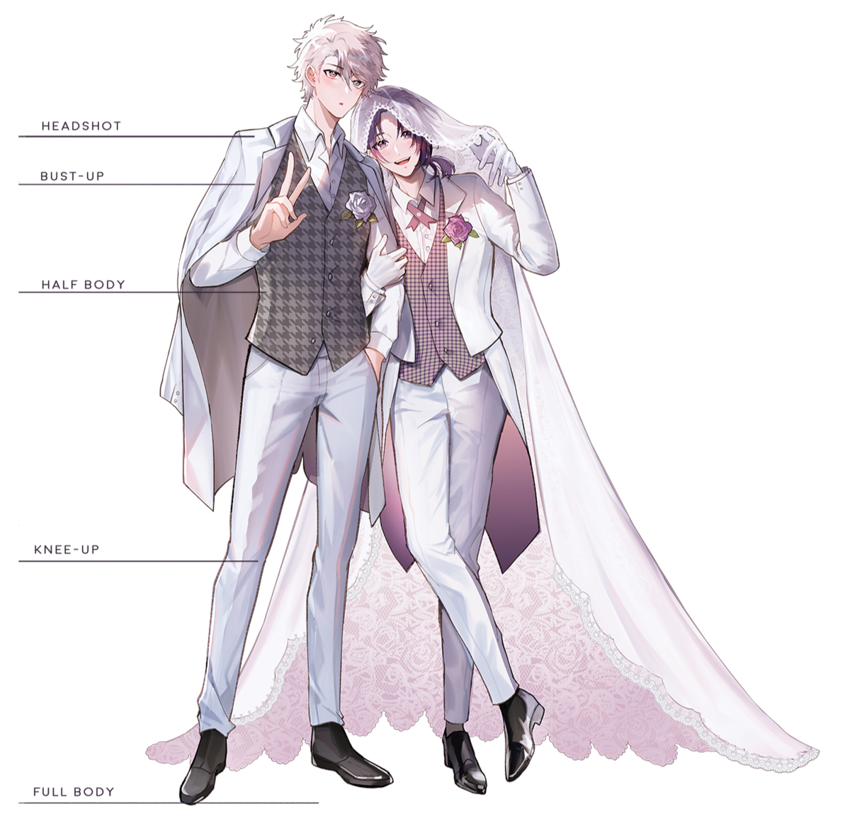 ♥ หากตัวละครมีดีเทลเยอะ เช่น เครื่องประดับ ผมยาว จะมีชาร์ตราคาเพิ่มเติม